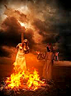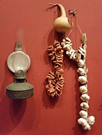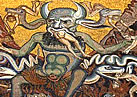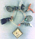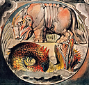 "Behemoth und Leviathan" und "The great red Dragon and the Beast from the Sea" von William Blake. Tschatsch-Amulettekette mit Feige gegen Böses, Bernstein gegen Zahnweh, Malachit für gute Geburt, Serpentin gegen Schreck, Koralle gegen Krankheit und Wolfszahn für ein gutes Gebiss. Fica (Feigenhand, Vulva) gegen Böses. |