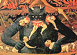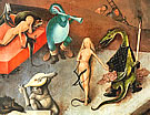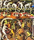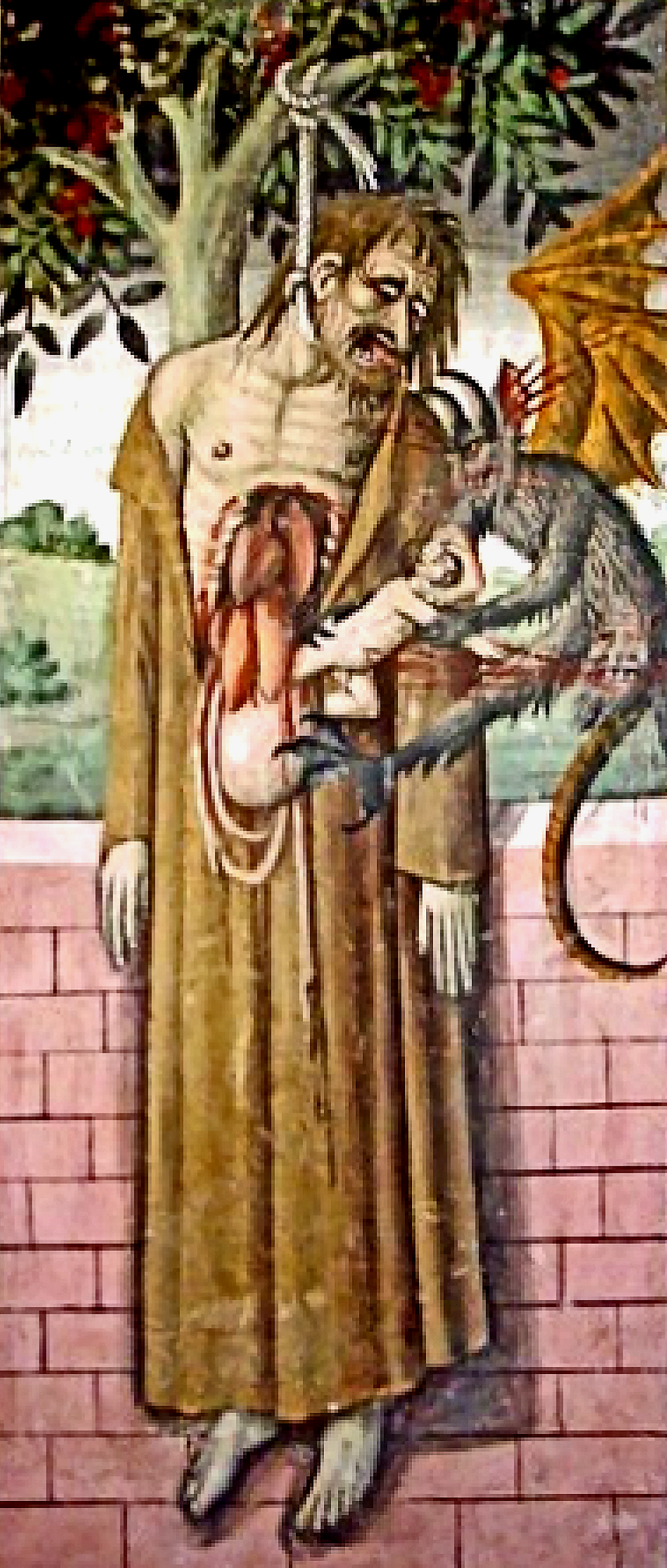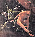 "Hölle", Fresko von Luca Signorelli im Dom zu Orvieto 1500 "Tod des Judas" von Giovanni Canavesio in der Notre Dame des Fontaines von La Brigue. "Hölle" von Hieronymus Bosch im Palazzo ducale in Venezia. |