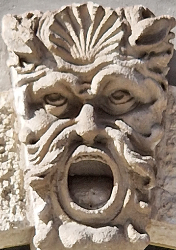 Von dem aus dem Graubünden stammenden Baumeister Domenico Sciassio stammen die 32 Fratzen und Grotesken im St.Lambrechterhof des Joanneums in Graz, die auf den Einfluss aus dem Comogebiet hinweisen. Die als Abschreckung gegen die kursierende Pest halbplastischen Köpfe zeigen zu Ohren, Hörnern oder Haaren ausgearbeitete Voluten, oftmals mongolide Augenpartien mit hervortretenden Stielaugen, weit aufgerissene Mäuler mit hergestrekter Zunge sowie vielfach gespaltete, von Klammern zusammengehaltene Kinnladern. |