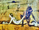 Leviathan im Stundenbuch der Katherina von Cleve um 1444. Matyrium des Isaias. "Der Fall der Verdammten" von Dirk Bouts in Leuwen. |