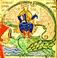 | Codex Vindobonesis: Der Elefant gebiert seine Jungen im Fluss, damit sie der Drache nicht tötet. | 507 | ![]() |