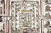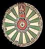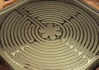 „Perlesvaux“, Gralsepos in altfranzösischer Sprache. Das Bodenlabyrinth aus Steinplatten in der Kathedrale von Chartres entsteht im frühen 13. Jahrhundert und misst 12 Meter im Durchmesser. Es ist ein sogenanntes Weg-Labyrinth mit einem einzigen, 261,50 m langen verschlungenen Weg, der in 11 konzentrischen Kreise und 34 Kehren zum Zentrum führt und im Mittelalter als symbolische Pilgerreise nach Jerusalem angesehen wird. In der Mitte des Labyrinths befand sich 1640 eine Darstellung des Kampfes von Theseus mit Minotauros. |