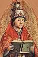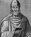 Als Damasus am 1.10. 366 zum Papst gewählt wird, erhebt eine arianische Minderheit Diakon Ursinus zum Gegenpapst. Zwischen beiden kommt es zu blutigen Kämpfen, in denen sich Damasus, der den Arianismus und Apollinarismus (Jesus hat zwar einen menschlichen Körper, aber keinen menschlichen, sondern ausschließlich göttlichen Verstand) bekämpft, durchsetzen kann. Der endgültige Sieg der nicänischen Theologie wird schließlich durch das von Kaiser Theodosius I. erlassene Religionsedikt von Thessalonich vom 28.2.380 besiegelt. Dieses wird dann 381 von der 2. Synode zu Konstantinopel bestätigt, die auch dem Bischof von Rom als Nachfolger Petri mit dem Titel "Apostolischer Stuhl" die Vorrangstellung gegenüber allen anderen Bischöfen zuspricht. Aus dem Mithraismus wird der Titel Papst (Pater Patrum, sumerisch: Papa, Oberster Bruder) sowie die rote phrygische Mütze übernommen, wie sie noch heute der säkularisierte Weihnachtsmann trägt. Damasus beauftragt auch Hieronymus mit der Revision der lateinischen Bibelübersetzung, Vulgata genannt. |