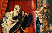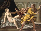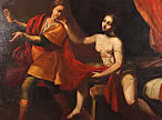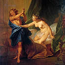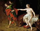 In der Septuaginta (Altes Testament), der ältesten durchgehenden Übersetzung der hebräisch-aramäischen Bibel in die altgriechische Sprache, endet das 1. Buch Mose (Genesis) mit dem Aufenthalt der Söhne Jakobs in Ägypten und der Erzählung von Joseph und der Frau des Potiphar: Joseph ist der Lieblingssohn von Stammvater Jakob und wird daher von seinen Brüdern gehasst. Sie verkaufen ihn als Sklaven an eine nach Ägypten ziehende Karawane und täuschen Jakob vor, Joseph sei von wilden Tieren getötet worden. Joseph wird in Ägypten als Sklave an Potiphar, einen Hofbeamten des Pharaos, verkauft. Potiphars Frau wirft ein Auge auf Joseph und wird mehrfach zudringlich. Als er sich weigert, mit ihr zu schlafen, beschuldigt sie ihn aus verschmähter Liebe der versuchten Vergewaltigung und Joseph wird ins Gefängnis gesperrt. Aufgrund seiner Fähigkeit, Träume zu deuten, kommt Joseph jedoch wieder frei und wird zu einem einflussreichen Mann in Ägypten. Als er die sieben fetten und sieben dürren Jahre in Ägypten durch Gottes Hilfe richtig vorhersagt und so das Land vor einer Hungersnot rettet, wird Joseph zum Vizekönig erhoben und heiratet Asenath, die Tochter des Priesters von On. ![]() ![]() |