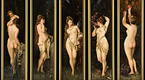 Die sumerisch-babylonischen Mythen ranken sich um die Dreifaltigkeit von Babylon und Uruk: Nimrod, seine Gattin Ischtar und Ischtars Sohn Dumuzi-Tammuz. In der Sage von Ischtars Gang in die Unterwelt reflektiert sich die altorientalische Vorstellung vom ewigen Dualismus zwischen Tod und Wiederkehr: Ischtar, Astarte oder Inanna (die Göttin des Morgen- und Abendsterns, die Göttin der Liebe, Fruchtbarkeit und Wollust, die Hure von Babylon) will zu ihrer Schwester Ereschkigal, der Herrin der Unterwelt hinabsteigen. Auf ihrem Weg muss sie sieben Tore der Unterwelt durchschreiten und verliert bei jedem eines ihrer Gewänder. Als sie schließlich nackt vor ihrer Schwester steht, wird sie von dieser gefangen genommen und als lederner Wassersack tot an einen Wandhaken gehängt. Weil dadurch aber alles Leben auf der Erde zum Stillstand kommt, erklärt sich Enki (auch Ea oder Henoch, der Eingeweihte, der Gott des Wasserhauses) bereit, zu helfen. Er erschafft zwei Wesen, den Kurgarru und Kalaturru. Sie sollen in die Unterwelt hinabsteigen, Ereschkigal beruhigen und nach dem Wassersack verlangen. Als sie diesen mit dem Brot und Wasser des Lebens besprengen, kommt Inanna kommt wieder zu sich und kann der Unterwelt entfliehen. Inanna wird aber von grässlichen Dämonen verfolgt, die einen Ersatz für sie verlangen. Als sie in ihre Stadt Uruk zurückkehrt, sieht sie, wie sich ihr Geliebter Dumuzi-Tammuz, der Getreidegott, statt um sie zu trauern, auf ihren Thron gesetzt hat und lustig feiert. Inanna ist darüber so wütend, dass sie Dumuzi den Dämonen überlässt, die ihn in die Unterwelt bringen. Dumuzi bricht in Tränen aus und fleht beim Sonnengott Utu um Erbarmen. Dieser regelt darauf hin sein Schicksal so, dass Dumuzi jeweils ein halbes Jahr auf der Erde und ein halbes in der Unterwelt zuzubringen hat. Immer wenn Dumuzi (Sohn der Auferstehung) im Herbst unter Weinen und Klagen stirbt, verdorrt die Vegetation; wenn er aber zu Ostern unter Jubel aufersteht, beginnt das Leben wieder zu erblühen. |