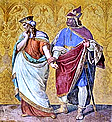 | Caractus (Arviragus), Sohn von Bran und Anführer des walisischen Stammes der Catuvellauni, wird nach seiner Niederlage gegen die Römer von Cartimandua, der Königin der Briganten, nach Rom ausgeliefert, dort aber von Kaiser Claudius begnadigt. Seine beiden Kinder Claudia und Linus gehören der dortigen christlichen Gemeinde an. | 51 | ![]() |