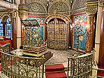 | Mit der ersten Eroberung Jerusalems und des Königreiches Juda durch den babylonischen König Nebukadnezar II. 597 v. Chr. wird die jüdische Bevölkerung ins Exil nach Babylon umgesiedelt. Diese Epoche des "Babylonischen Exils" dauert bis zur Eroberung Babylons 539 v. Chr. durch den Perserkönig Kyros II. Um ihren Gott wie zuvor im Tempel zu verehren, bauen sie als kleines Heiligtum ein "Haus der Versammlung", die Synagoge. An Stelle der Tieropfer tritt die Lesung aus den Psalmen sowie Geänge. Dieser Gebetsgottesdienst bedeutet die Abkehr vom Opfer, die Entmachtung der Priesterklasse und die Demokratisierung der Liturgie. Lediglich 10 männliche Juden können sich überall zu einer Laienführerschaft zusammenfinden. Nach dem Vorbild des Tempels ist auch die rituelle Ausstattung jeder Synagoge: Die Heilige Lade an der Ostwand mit den Thorarollen und dem Zeigestab erinnert an die Bundeslade. Auch die Frauenabteilung entspricht dem ehemaligen Vorhof der Frauen. Neben dem Sakralraum, der am Sabbat für das emeinschaftsgebet genutzt wird, Der daran angeschlossene Lehrraum, die "Schul" dient für das Studium und Diskussionen. | 597 v. Chr. |